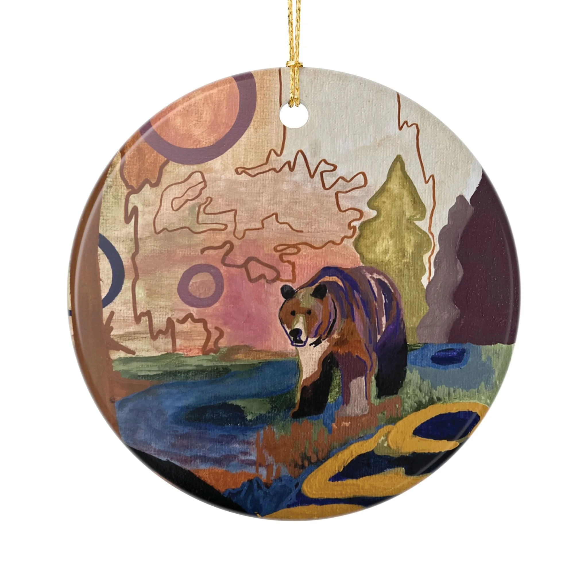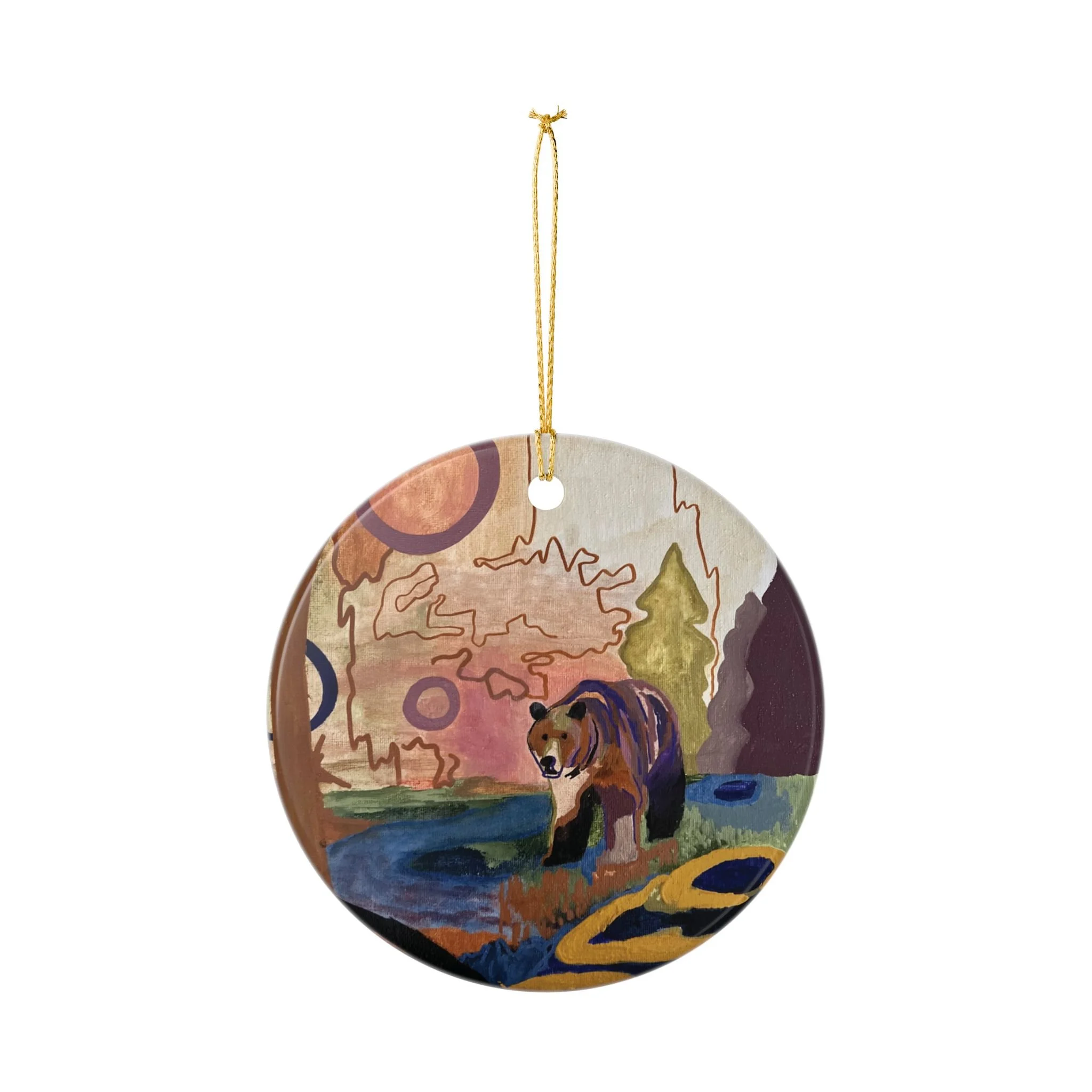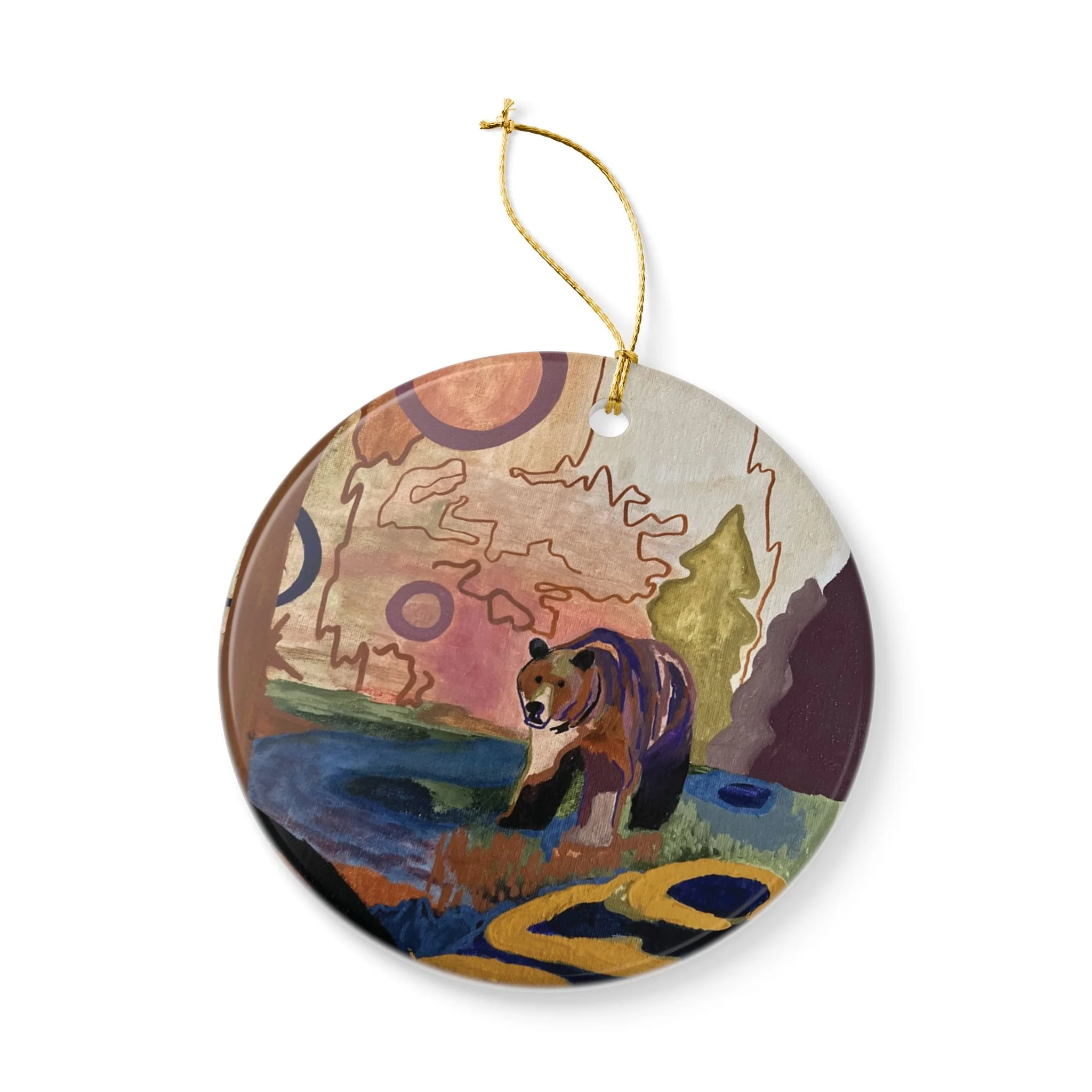 Wildlife Art Ceramic Ornaments - Bear Design - Double-Sided Decor for Holidays